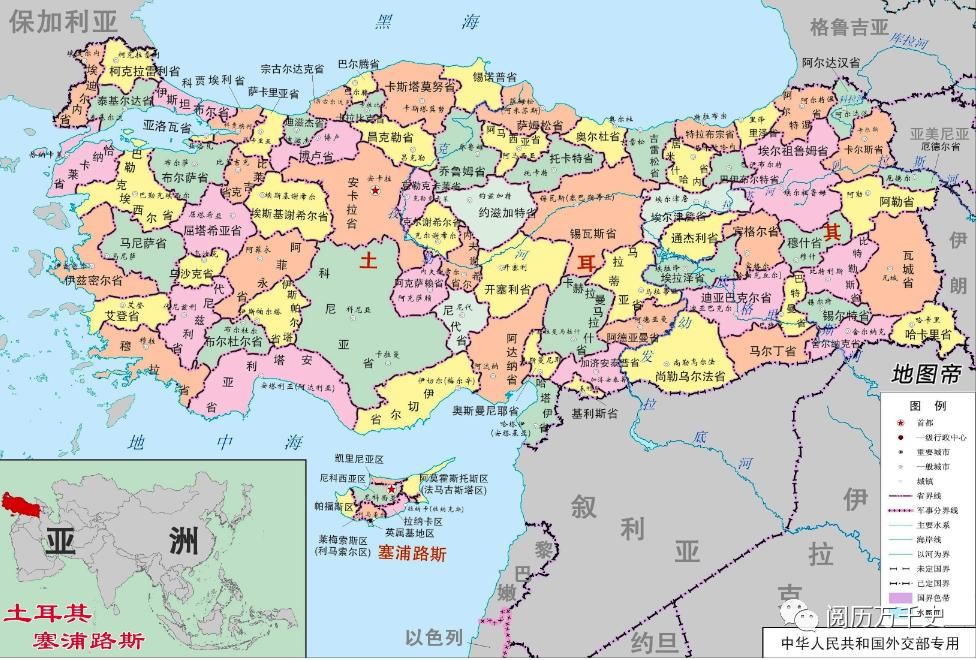 土耳其共和国,简称土耳其。它是一个横跨亚欧大陆两洲的国家,北临黑海,南临地中海,东南与叙利亚、伊拉克接壤,西临爱琴海,东部与格鲁吉亚、亚美尼亚、伊朗等接壤。土耳其地理位置和地缘政治战略意义极为重要,是连接欧亚的十字路口,首都安卡拉。其国土面积为78.36万平方公里,其中97%位于亚洲的小亚细亚半岛,3%位于欧洲的巴尔干半岛。截至2022年12月,人口总数为8527万。其中土耳其族占80%以上,库尔德族约占15%,全国共分为81个省。官方语言土耳其语,主要宗教为伊斯兰教,占总人口的99%以上。
