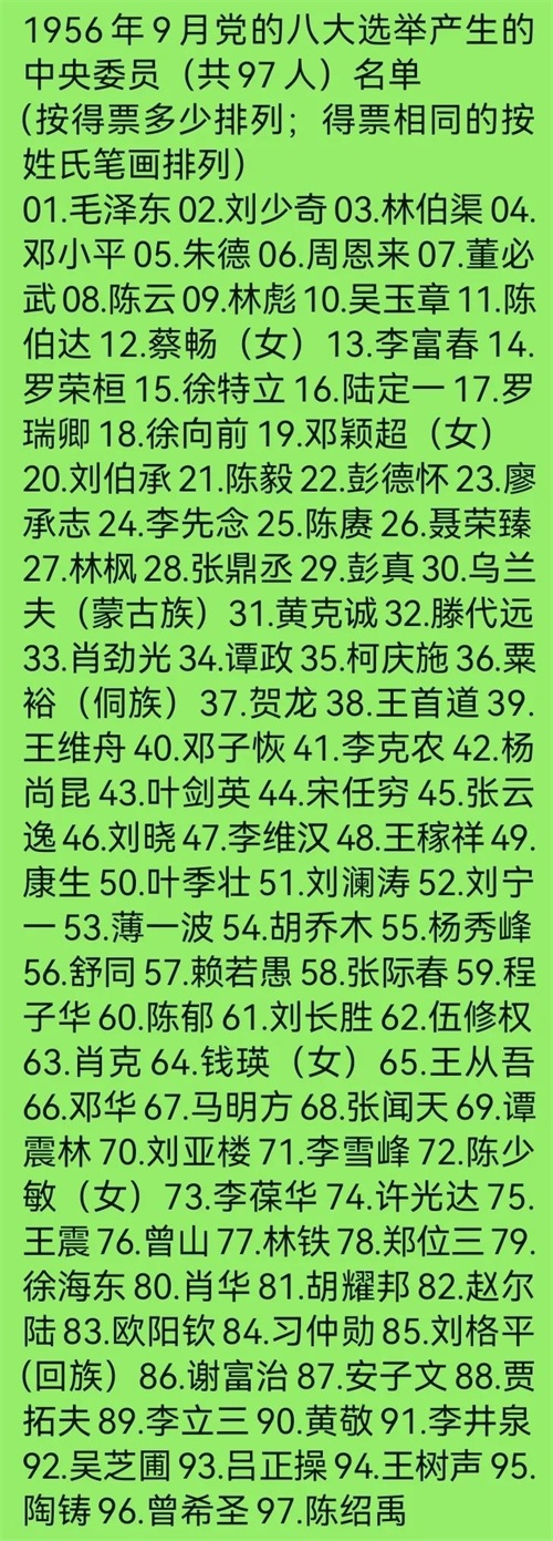 06.陈 毅:在中国共产党八大中央委员会排名第21。