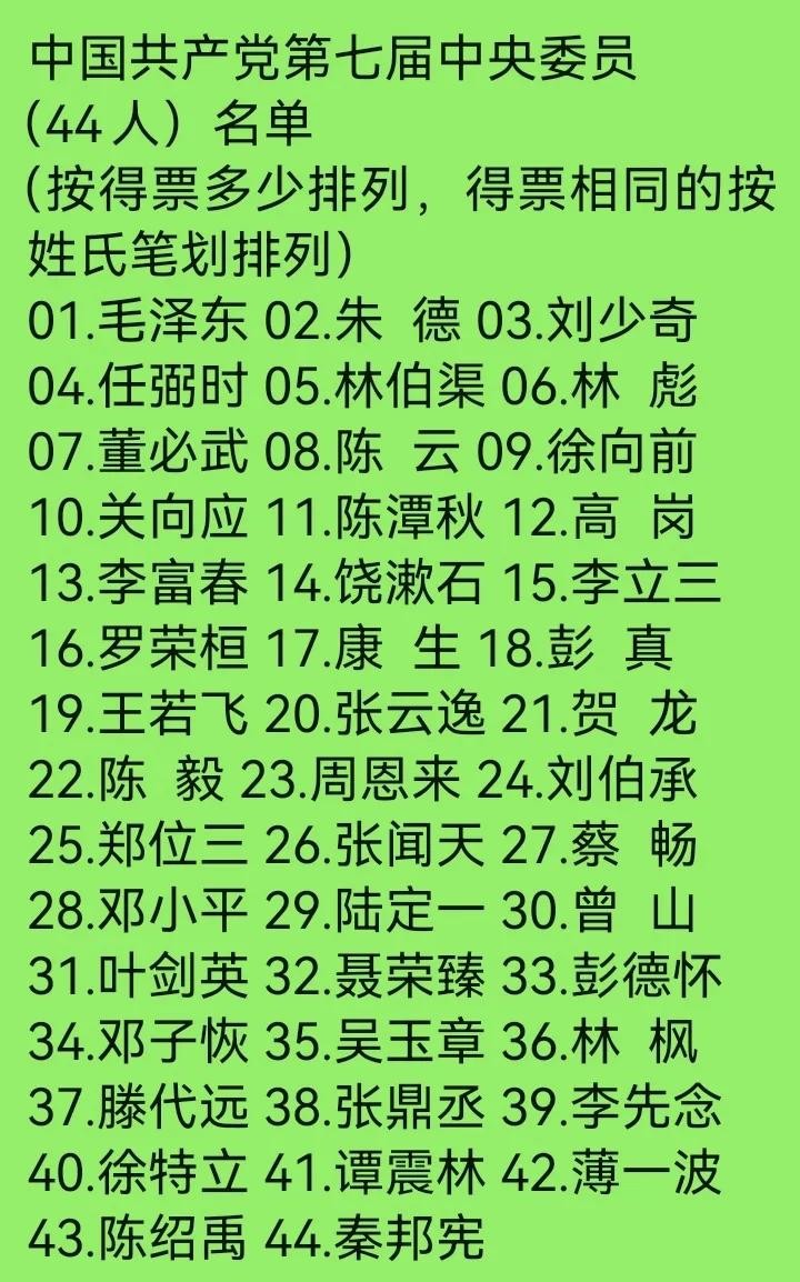 02.林 彪:在中国共产党七大中央委员会排名第6。