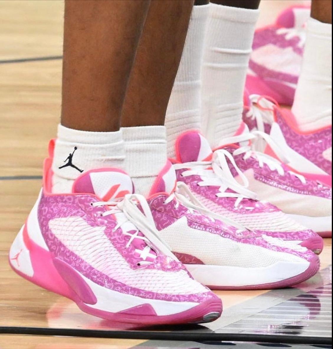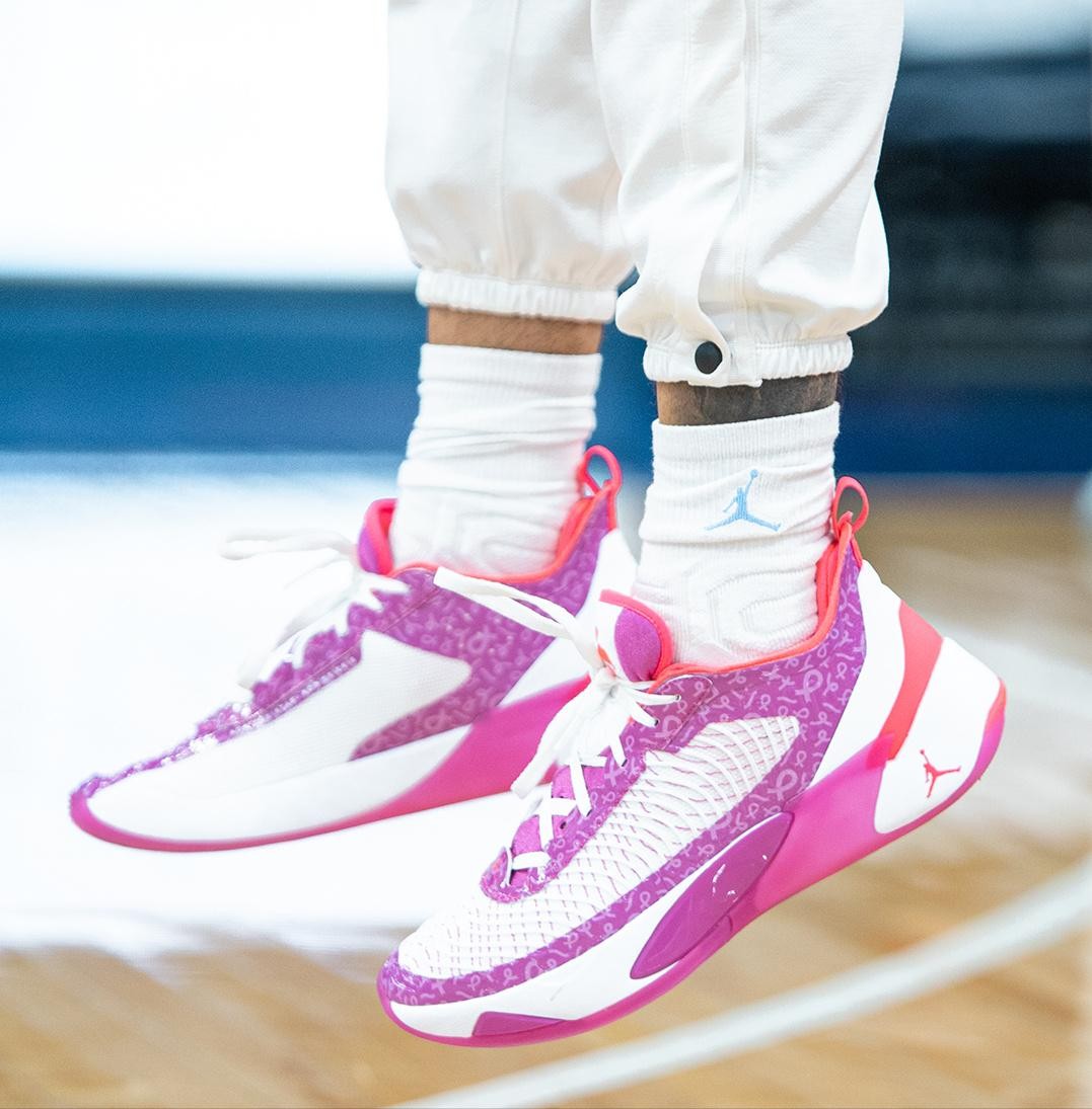 北卡大学以及乔治城大学的教练组成员和球员,上脚了相关主题的Jordan Luka 1 “Coaches vs. Cancer” PE。