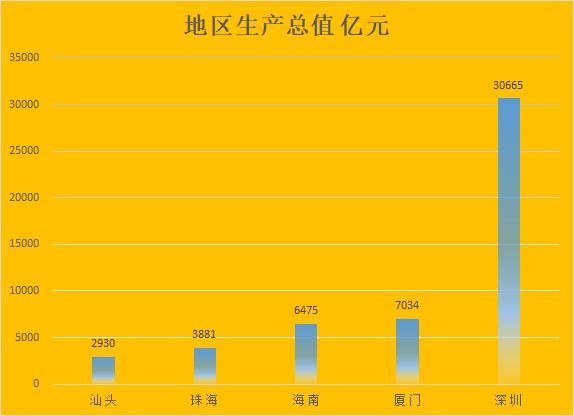 按GDP从多到少排序,依次是1深圳,2厦门,3海南,4珠海,5汕头;