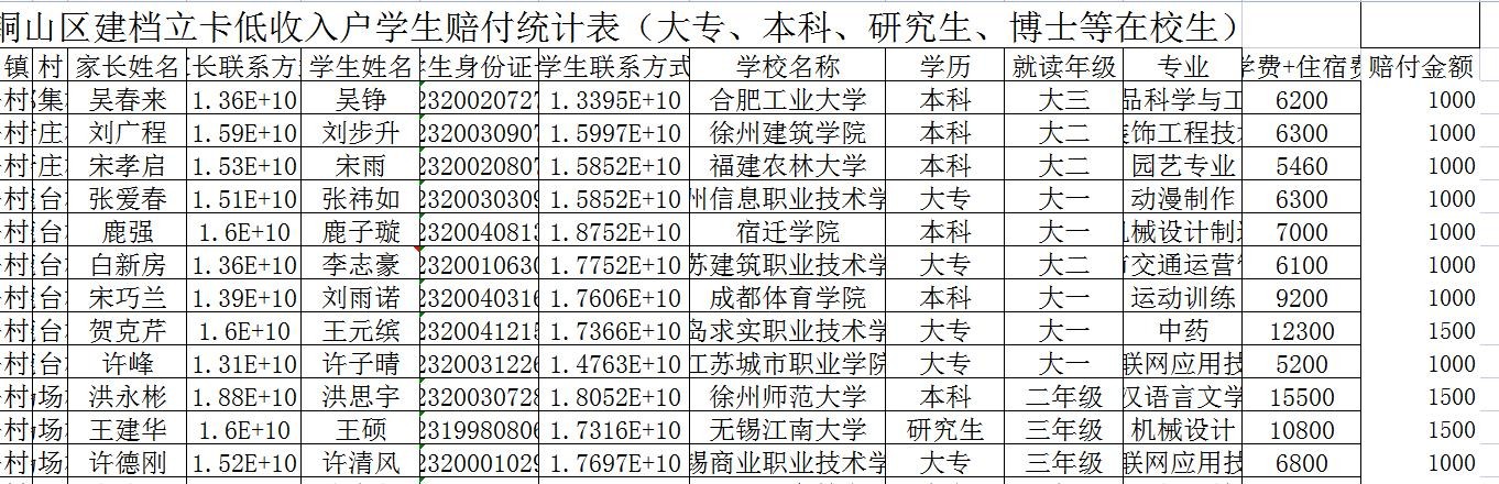 高校建档立卡学生教育补助