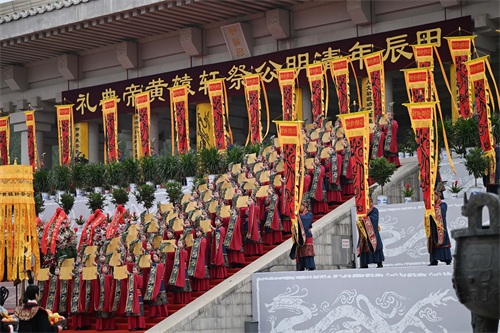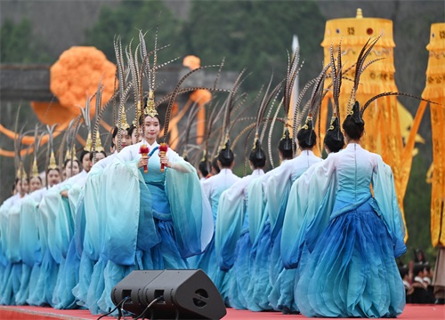 4月4日,演员在公祭轩辕黄帝典礼上的乐舞告祭环节表演。 新华社记者 张博文 摄