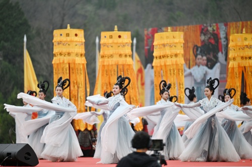 4月4日,演员在公祭轩辕黄帝典礼上的乐舞告祭环节表演。 新华社记者 陈晔华 摄
