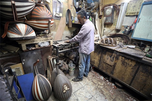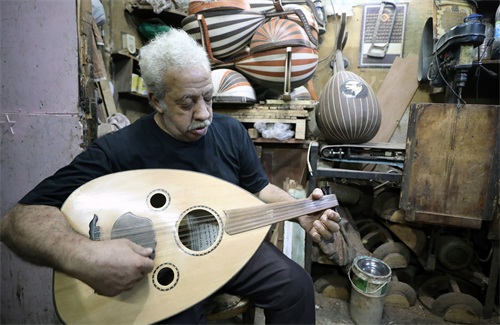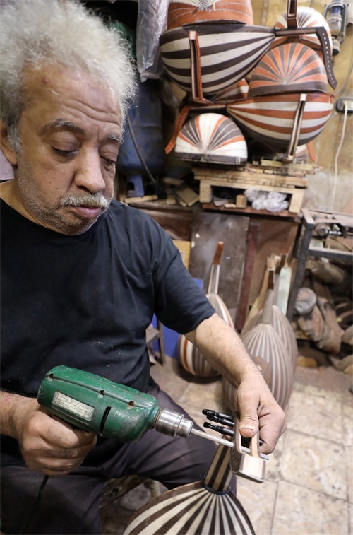72岁的萨义德·阿卜杜勒·阿泽姆自1978年开始经营自己的乌德琴工坊。他和儿子制作的乌德琴销往中东和欧洲各地。乌德琴是中东地区最具代表性的传统弦乐器,有“中东乐器之王”之称,在阿拉伯音乐中占有重要地位。