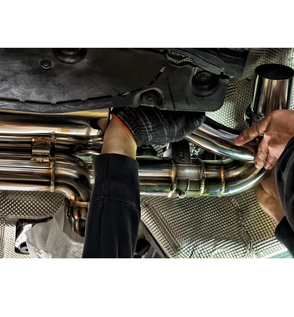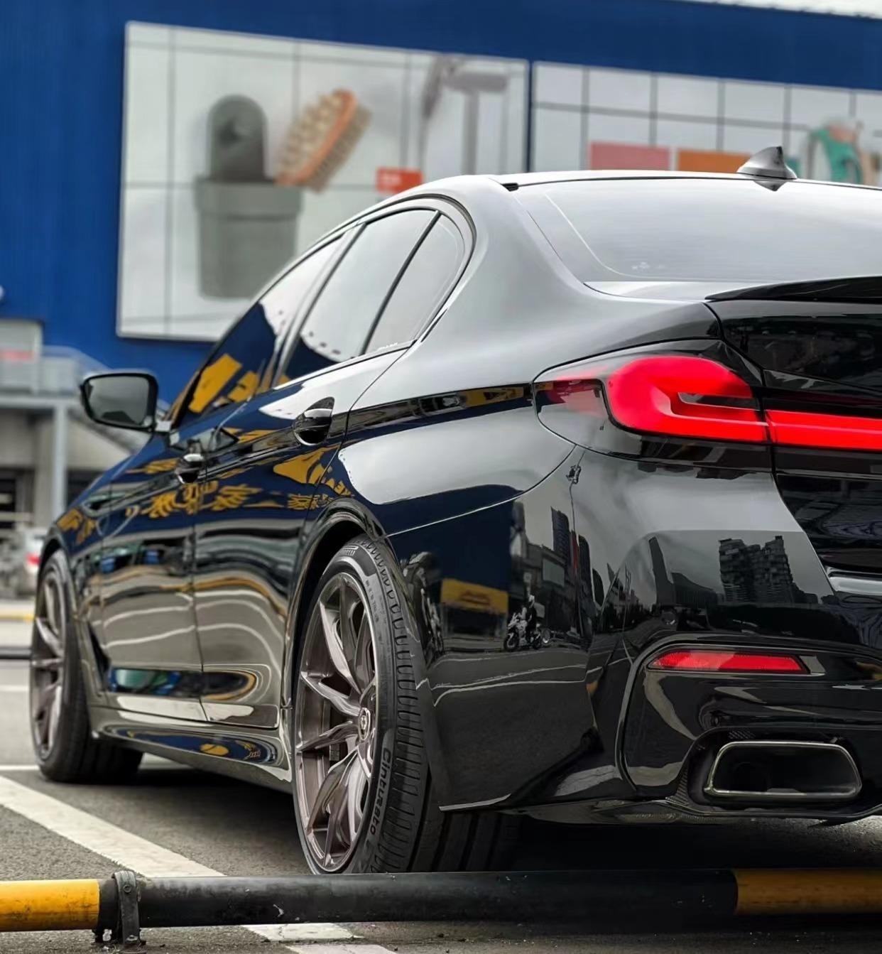 车主的需求就是要低调中带着帅气,所以我们给到的方案就是这种黑武士风格,传统的黑武士基本上都是所有部件的全黑化改装,个人认为这种方案也还不错,但是少了一些颜色的碰撞,比如说轮毂,如果全黑的的话就看不出来款式了;排气和尾唇我们选择了比较保守的小改动,MP的小后唇饱满又不夸张,方形口的MP排气尾嘴低调又耐看;