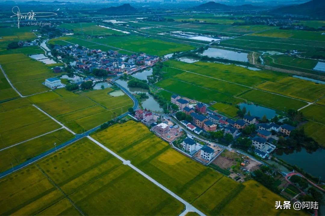 余杭径山不仅有禅茶一味和花海,航拍视角下的万亩良田也颇为壮观