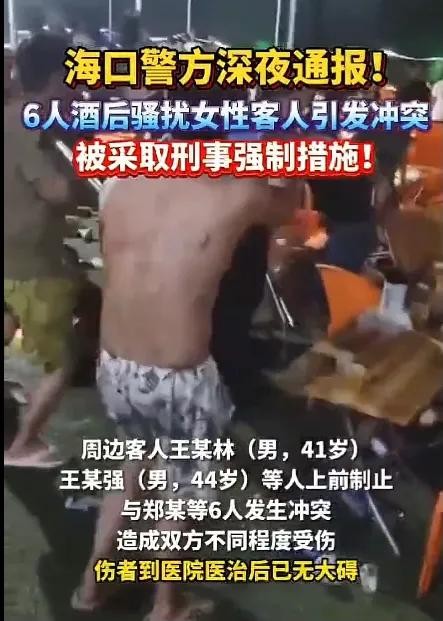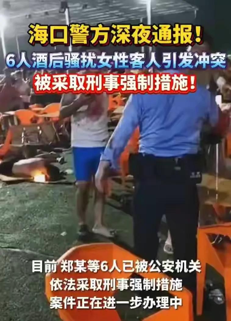 据目击者称,这六名男子在喝酒后开始对女性客人进行骚扰。保安上前劝阻,却遭到了他们的反抗,甚至动手推搡。随后,一些游客见义勇为,试图制止这种不良行为,却引发了更大的混战。现场一度乱成一团,警方无法及时控制局面。