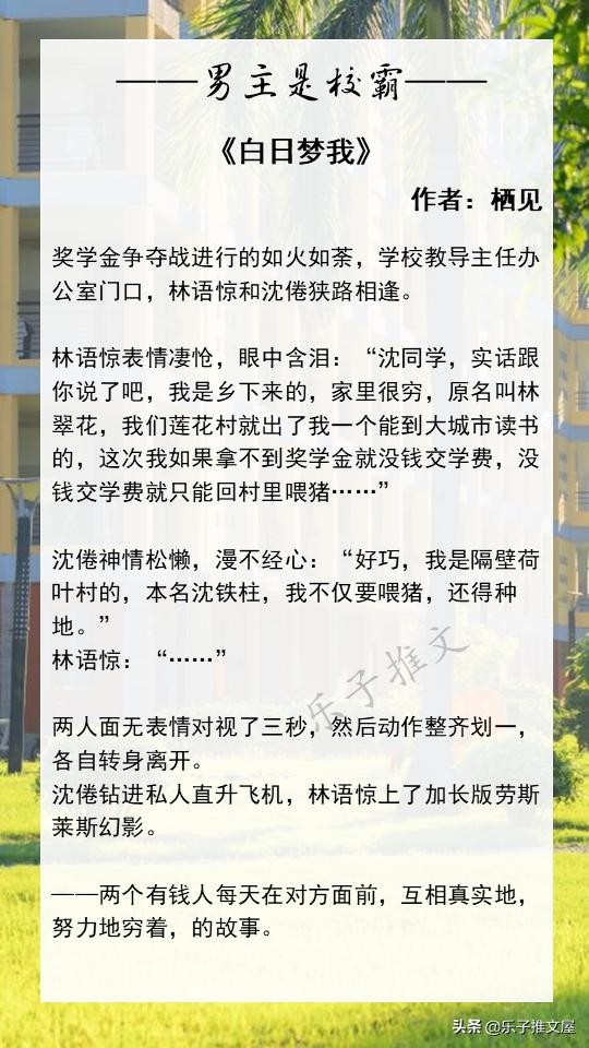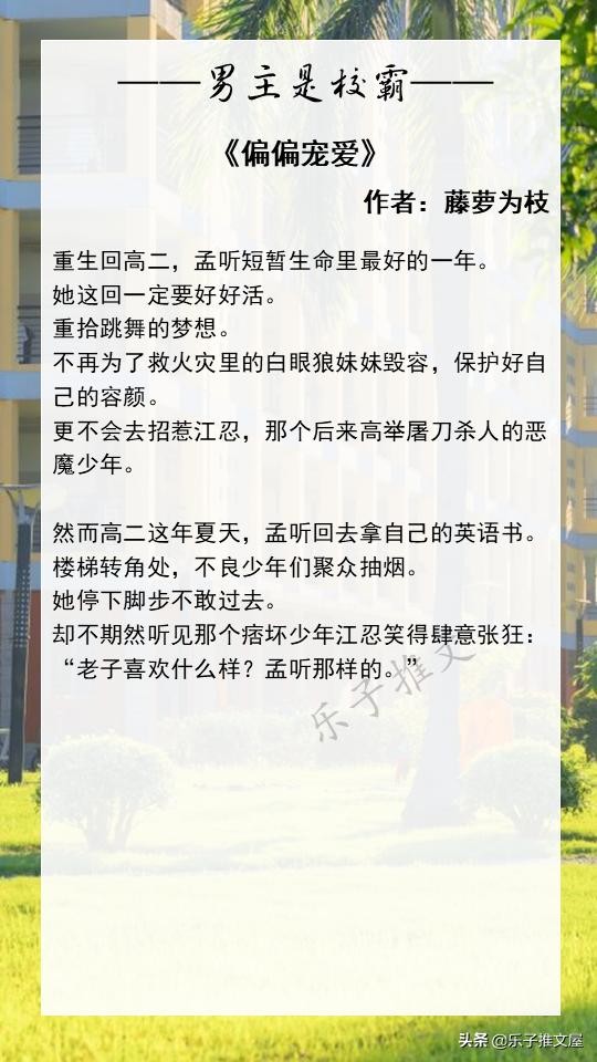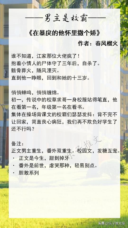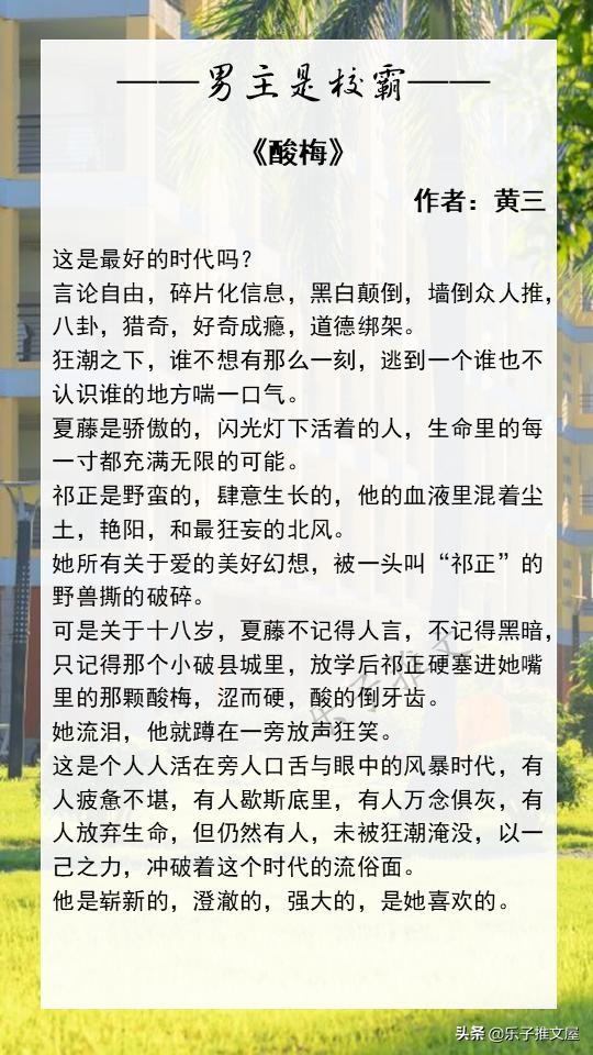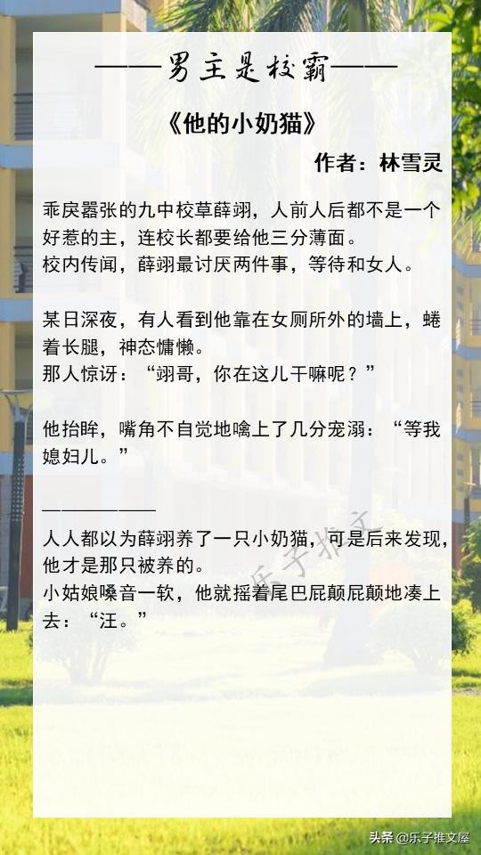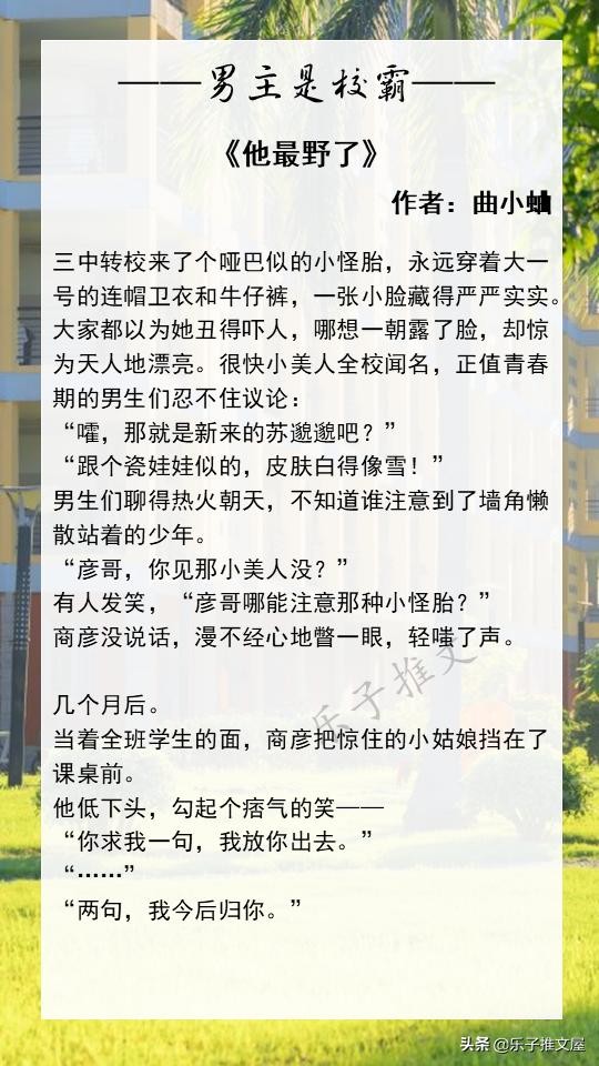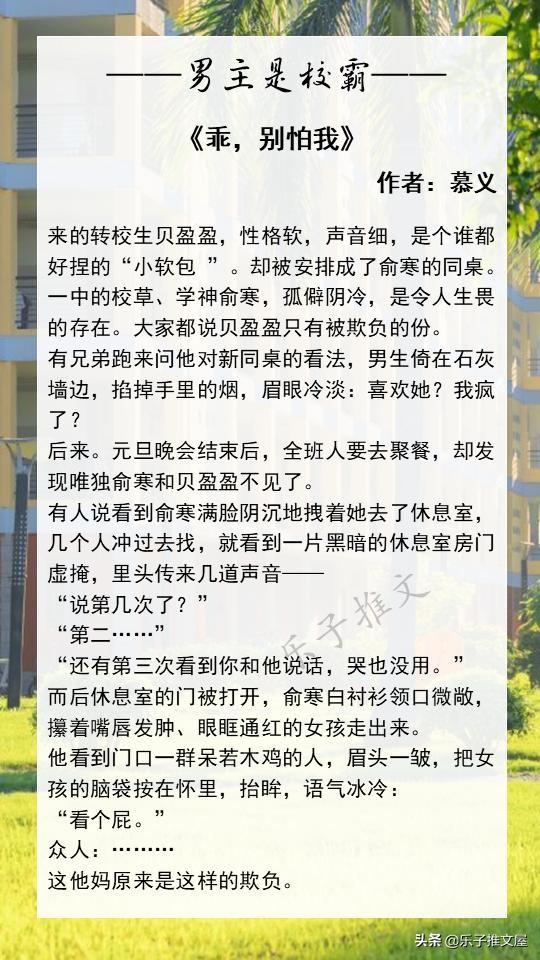 大家好!欢迎各位来到乐子的小说推文屋。这次推荐的是8本高质量的男主是校霸的校园文。喜欢的话可以点个收藏,闲的时候慢慢看!如果您读过更好的男主是校霸的校园文或者有喜欢的小说类型都可以在评论区进行留言!