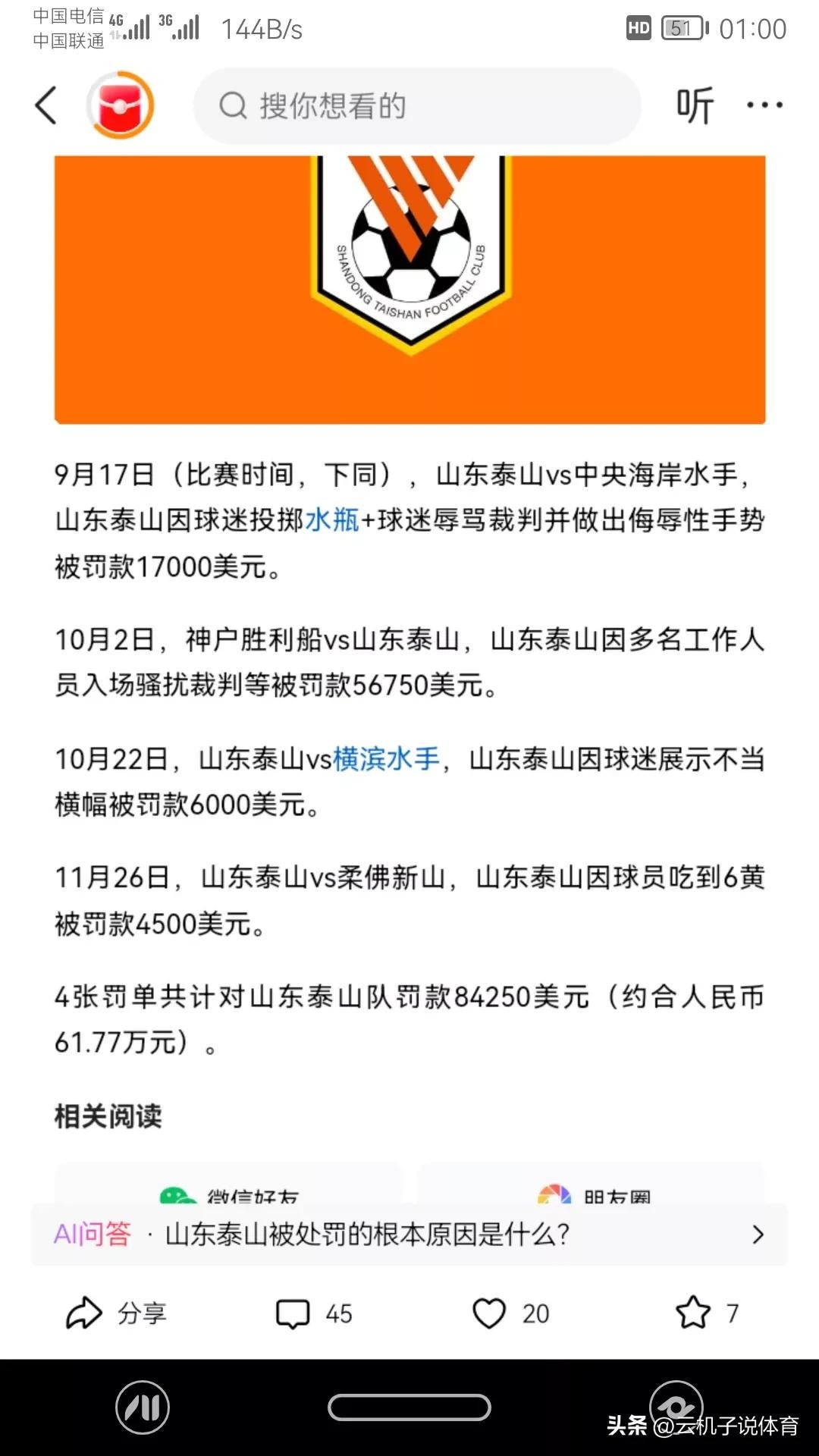 被罚4场共计62万!山东泰山送人头为啥没完没了?