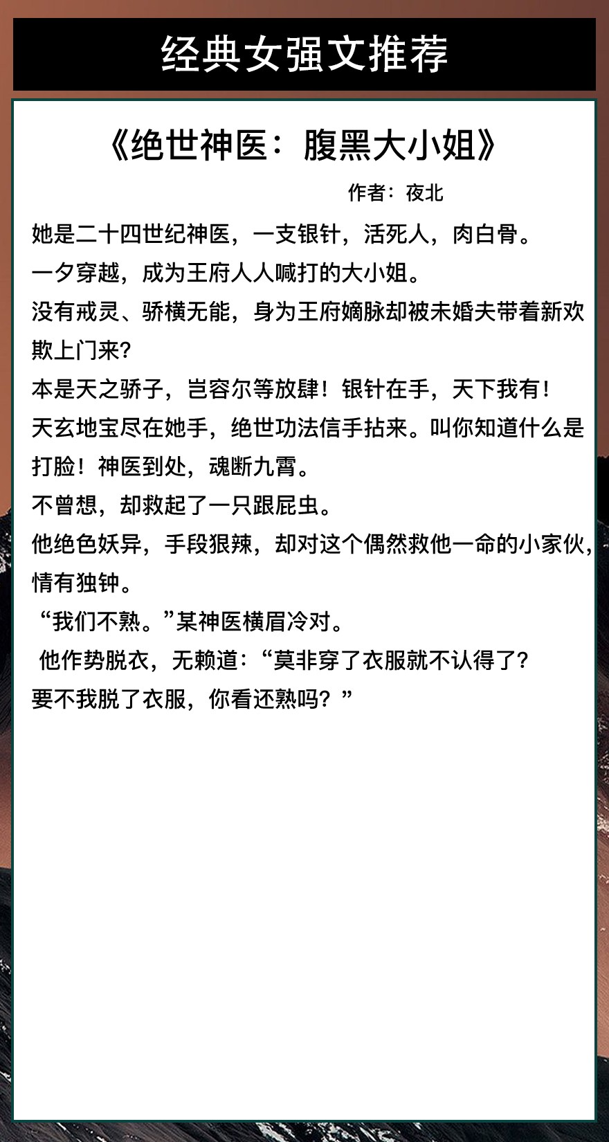 第三本《绝世神医:腹黑大小姐》作者:夜北