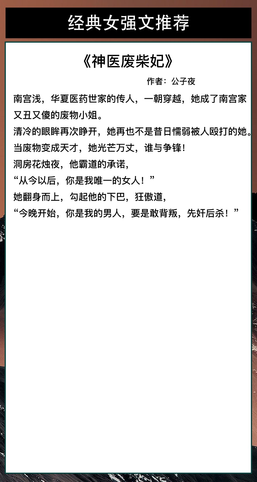 第五本《神医废柴妃》作者:公子夜