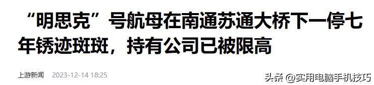 原文刊载于上游新闻2023-12-14关于““明思克”号航母在南通苏通大桥下一停七年锈迹斑斑,持有公司已被限高