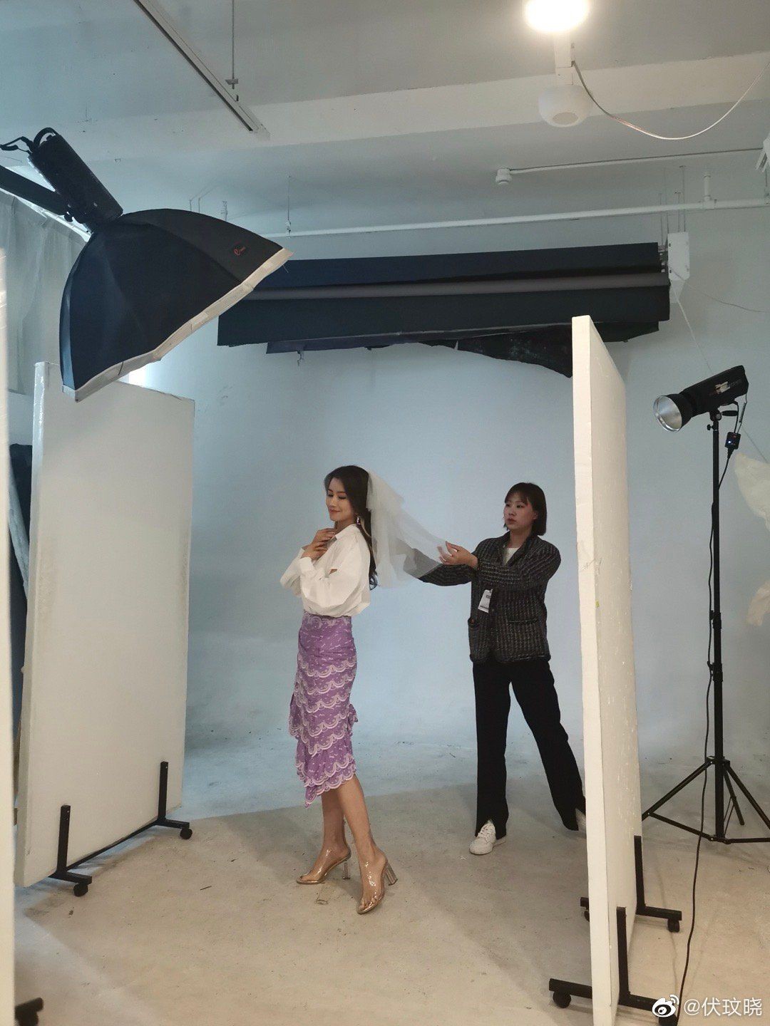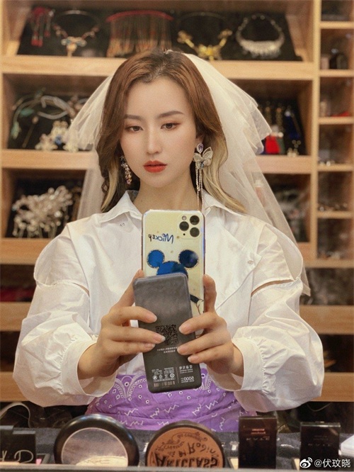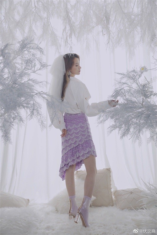 有知性优雅的职场女性套装,也有搭配紫色甜美裙子的少女感造型,披着新娘头纱,格外美丽。