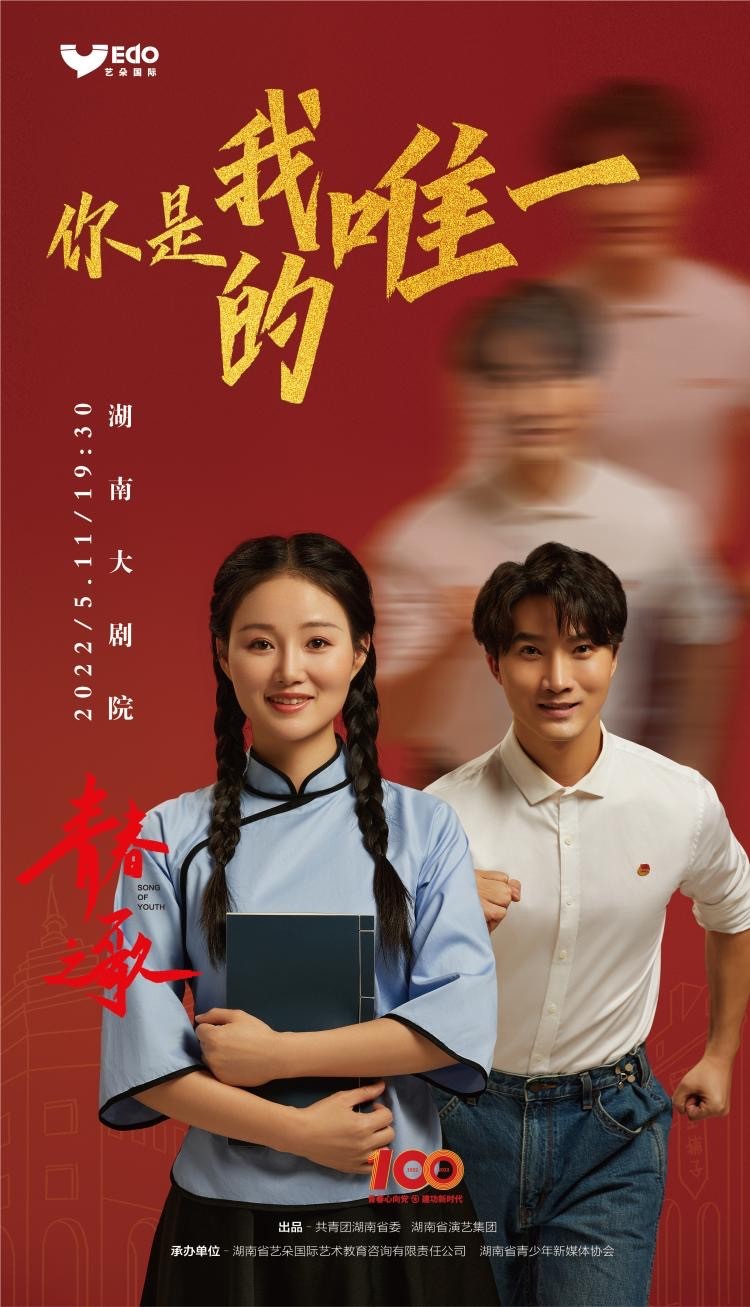 潇湘晨报记者了解到,为迎接党的二十大胜利召开,由共青团湖南省委、湖南省演艺集团共同出品,艺朵国际承办的“喜迎二十大、永远跟党走、奋进新征程”青春歌舞剧《青春之歌》,将于6月20日在湖南大剧院上演。