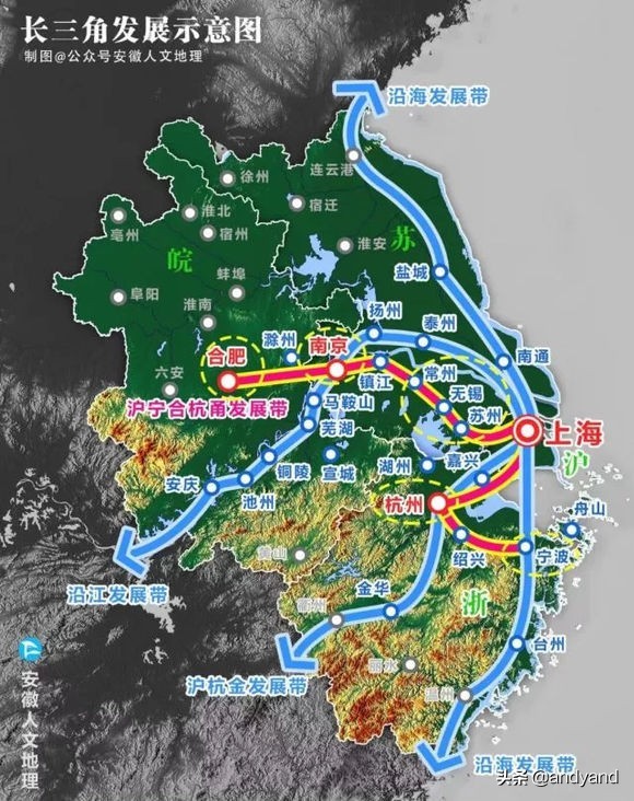 2-上海为核心中心城市,以及三大副中心城市:杭州,南京,合肥。