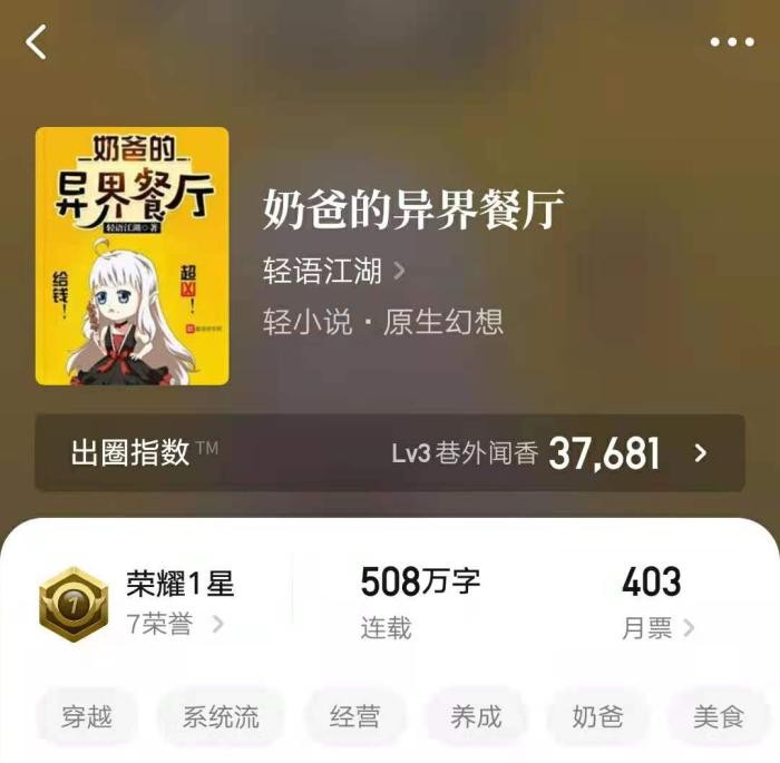 2.《奶爸的异界餐厅》作者:轻语江湖